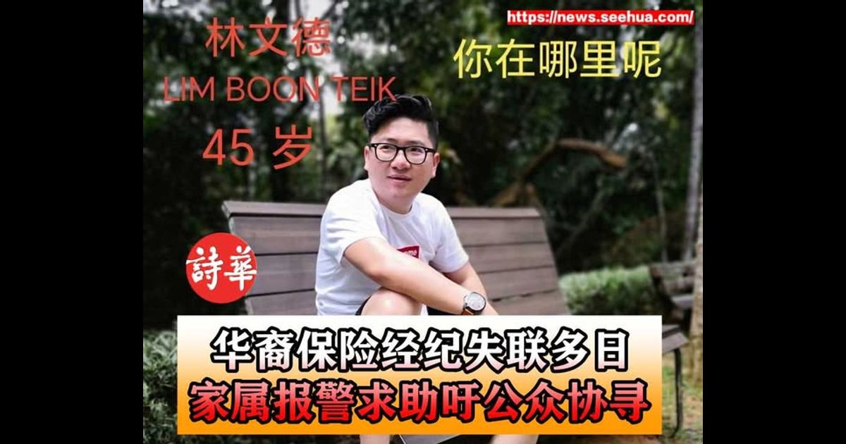 (亚罗士打4日讯)45岁华裔保险经纪林文德(Lim Boon Teik)自1月29日早上出门后与家人失联至今,音讯全无,家属已向警方报案,并呼吁社会大众协助提供线索,盼早日寻回失联亲人。