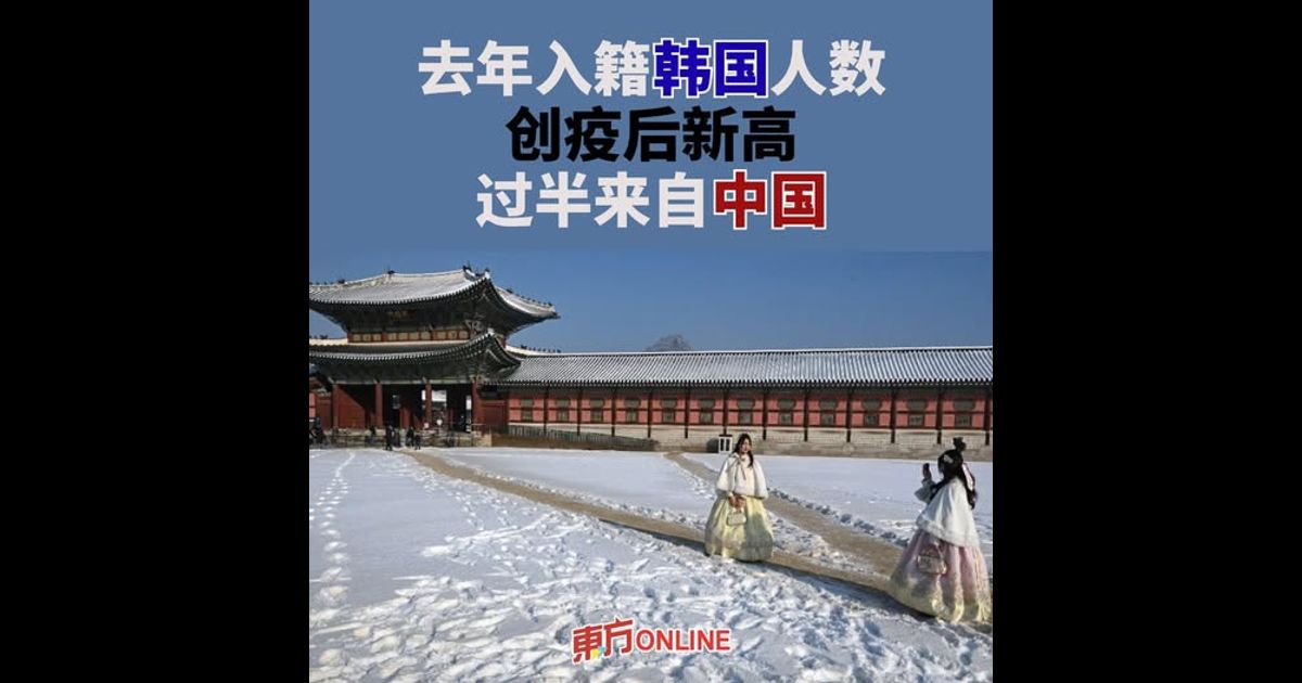 (首尔4日讯)韩国法务部出入境外国人政策本部周三发布的统计数据显示,2025年共有逾1万1000名外国人入籍韩国,其中过半来自中国,均为新冠肺炎疫情过后的最高水准。