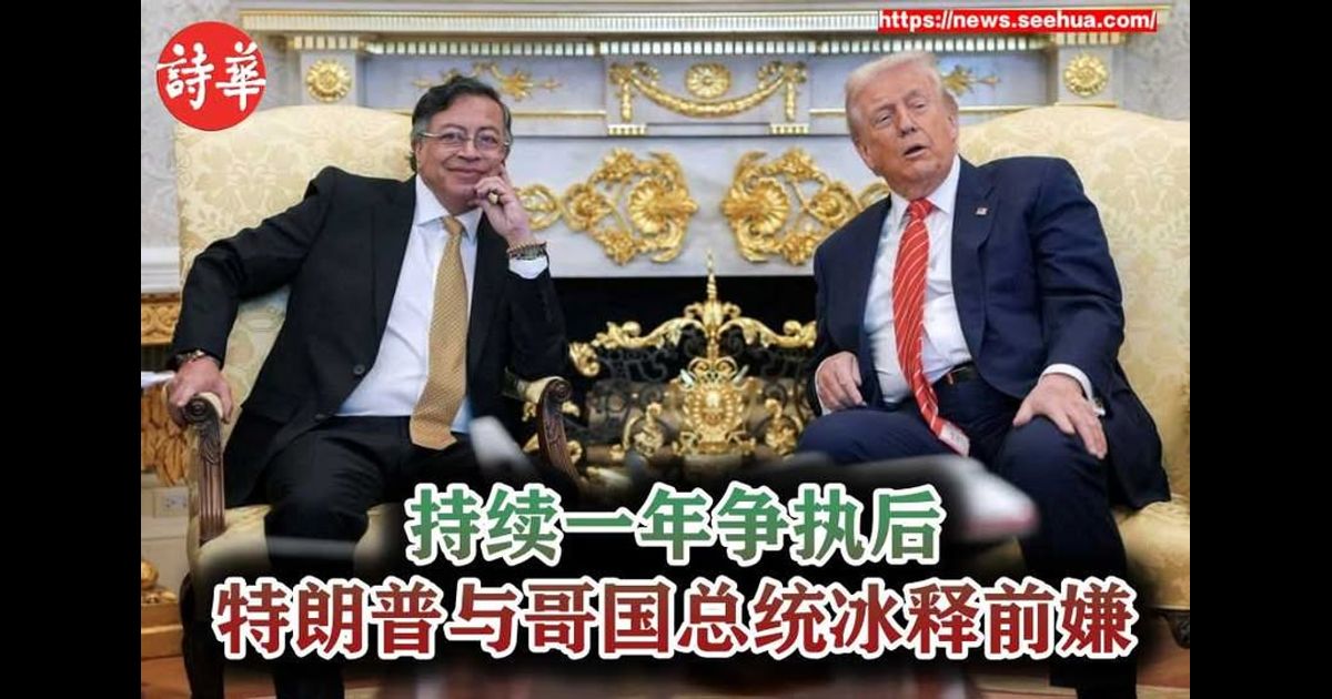 (华盛顿4日讯)哥伦比亚总统佩特罗和美国总统特朗普当地时间周二,似乎冰释前嫌。此前,双方持续一年的争执最终以特朗普威胁要像在委内瑞拉那样推翻这位左翼领导人而告终。