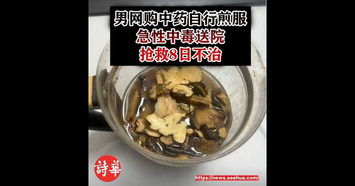 男网购中药自行煎服 急性中毒送院抢救8日不治