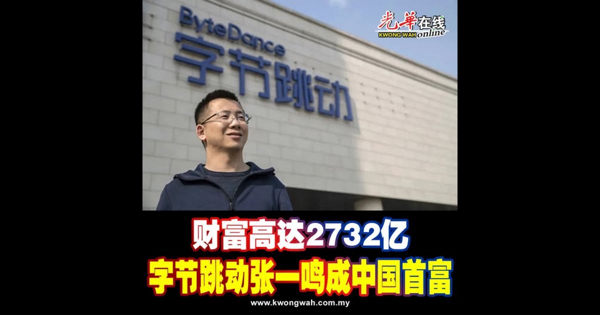 财富高达2732亿 字节跳动创办人张一鸣成中国首富