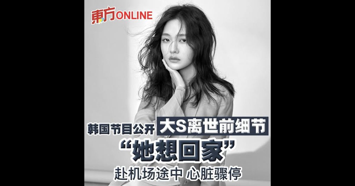 韩国节目公开大S离世前细节 “她想回家”赴机场途中心脏骤停