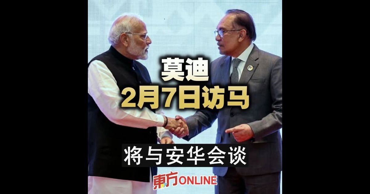 (吉隆坡5日讯)印度总理莫迪将于2月7日访问马来西亚,将与首相拿督斯里安华举行战略和双边会谈。