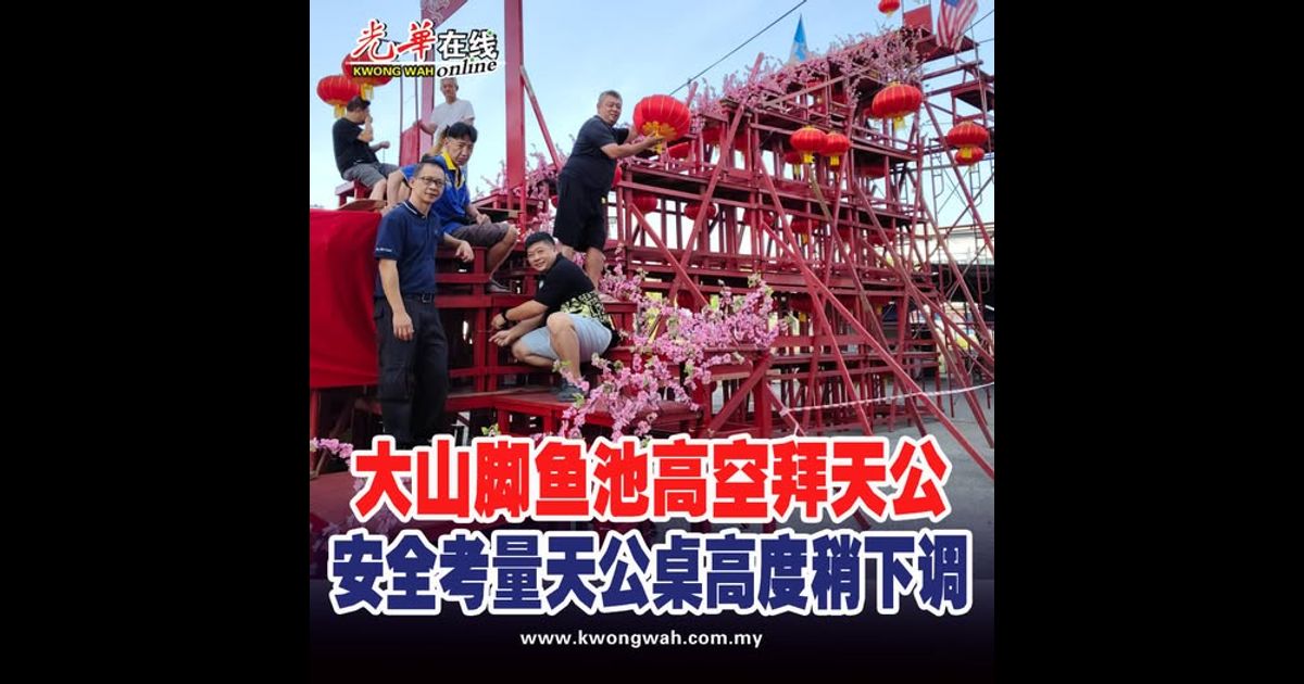 大山脚鱼池高空拜天公庆典将于农历大年初八(2月24日)晚上举行,基于安全考量,加上人手不足因素,今年天公桌高度将下调至28尺8寸;尽管规模有所缩小,但传承中华文化精神不变。