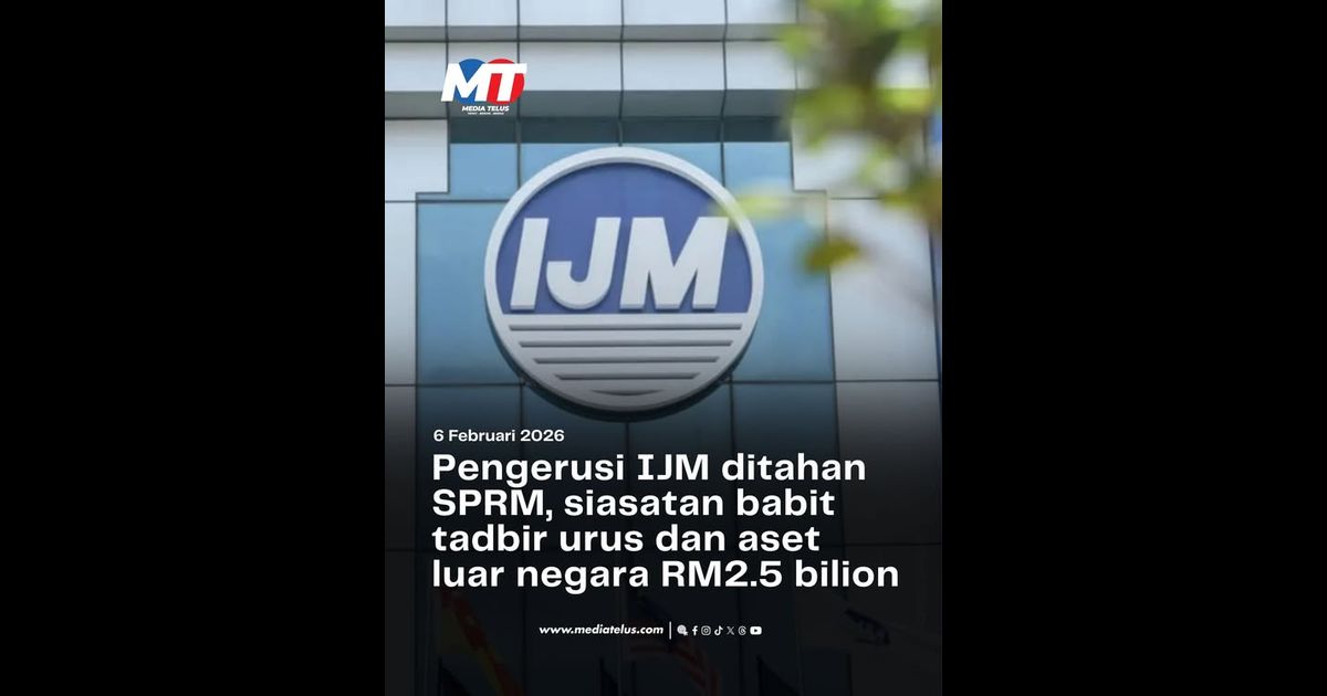 PUTRAJAYA 6 Feb – Suruhanjaya Pencegahan Rasuah Malaysia (SPRM) menahan Pengerusi IJM Corporation Berhad bagi membantu siasatan berhubung isu tadbir urus korporat, proses perolehan, transaksi kewangan serta pemilikan aset di luar negara yang dianggarkan bernilai RM2.5 bilion.
