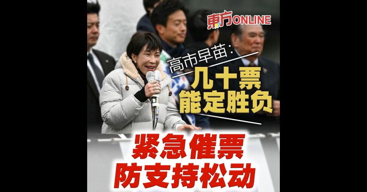 (东京7日讯)日本众议院选举周日举行投票,民调显示执政阵营情势大好,不仅自民党有机会单独过半,与维新会合计更上看300席。不过自民党不因此松懈,首相兼自民党总裁高市早苗周六在YouTube发出紧急动员讯息,呼吁选民前往投票,强调单一选区制度“几十票就能定胜负”。