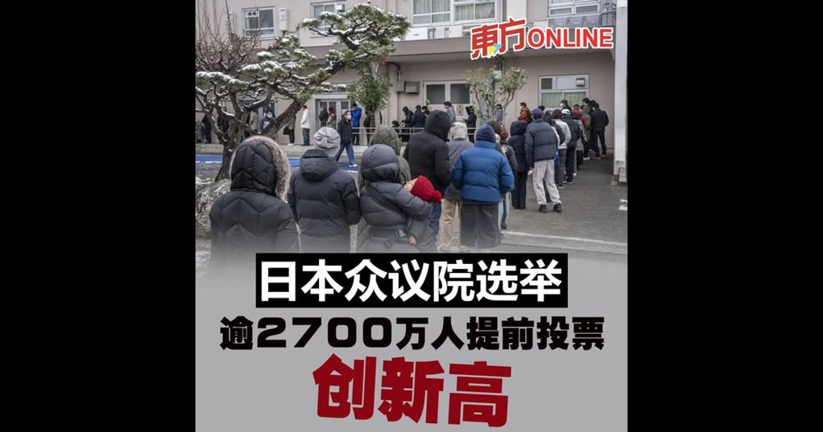 (东京8日讯)第51届日本众议院选举周日投开票。总务部估计,这次选举有2701万7098人提前投票,不仅较前一次2024年众议院选举增加约606万人,也创下日本国政选举新高。