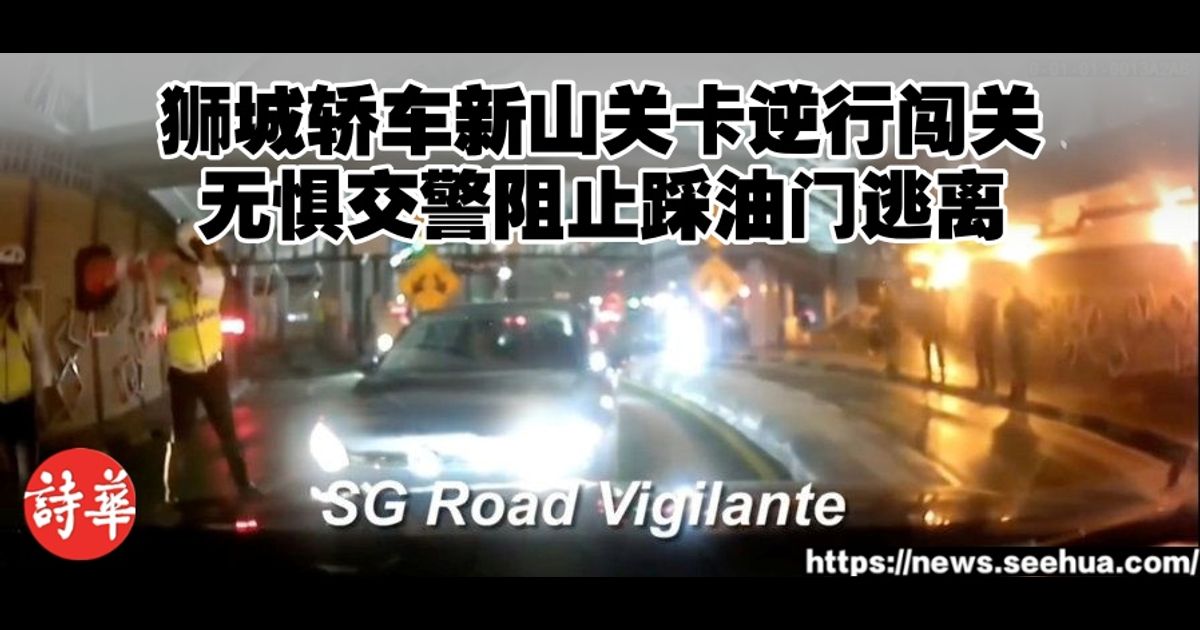 (新山8日讯)一辆新加坡注册轿车日前在新山关卡车道逆行闯关,交警上前拦截时,司机仍多次倒车并突然向前冲行,最终驶入左侧车道逃离现场,危险行径引发网民热议。