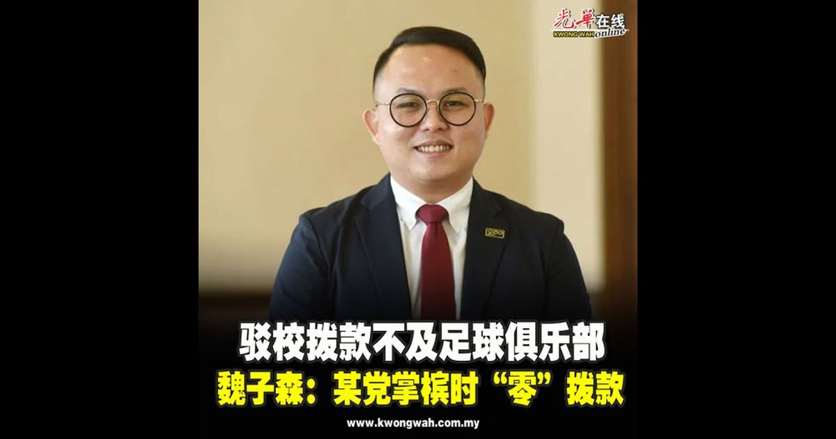 针对一名政党领袖批评槟州政府给予华校的拨款不及足球俱乐部,槟州青年、体育及卫生事务委员会主席魏子森反击,该名领袖所属政党在担任槟州政府时,给予华校的制度化拨款是“零”。