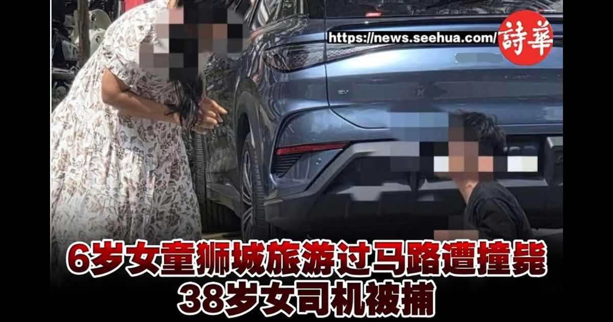 (新加坡8日讯)一家四口赴新加坡旅游期间发生意外,母女过马路时遭轿车撞倒,其中6岁女童伤重不治;涉事的38岁女司机已被警方逮捕。