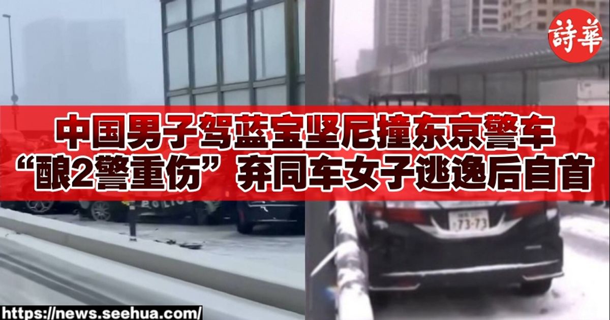 (东京9日讯)日本东京中央区筑地大桥昨(8)日因降雪路面结冰,接连发生多起连环车祸,其中一辆蓝宝坚尼跑车竟高速冲撞正在处理事故的警车,造成2名警员重伤。肇事的中国籍司机事后逃逸,当晚才到警局投案。