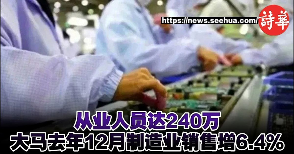 莫哈末乌兹尔续指,制造业员工人数在去年12月达到240万人,按年上扬1.1%;按月上升0.1%。