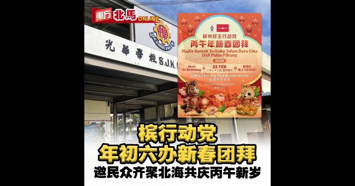 (槟城9日讯)槟州民主行动党将于2月22日晚上7时30分,在北海光华小学举办“丙午年新春团拜暨门户开放活动”,诚邀各界民众踊跃出席,一同迎春纳福、共庆佳节。