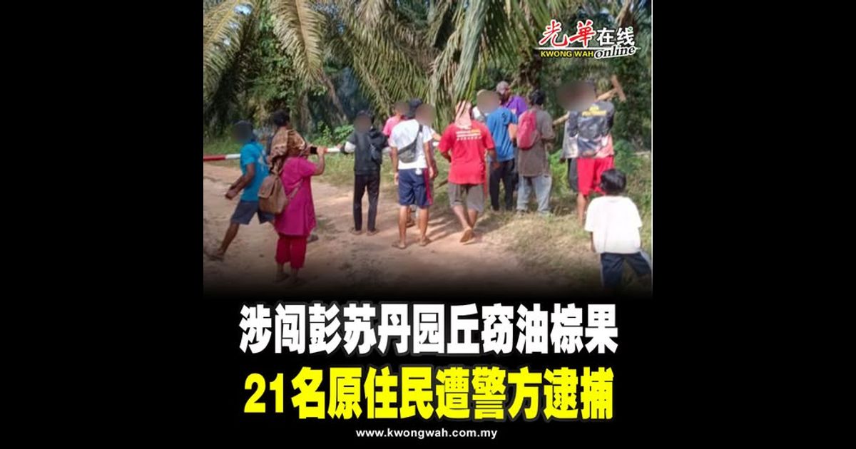 21名原住民因涉嫌擅闯彭州苏丹阿都拉殿下名下的园丘并窃取油棕果,于昨日遭警方逮捕。