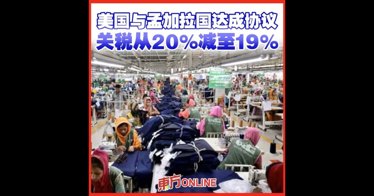 法新社报导,白宫发布联合声明,根据该协议,美国将把对孟加拉国产品征收的“对等”关税从20%下调至19%。