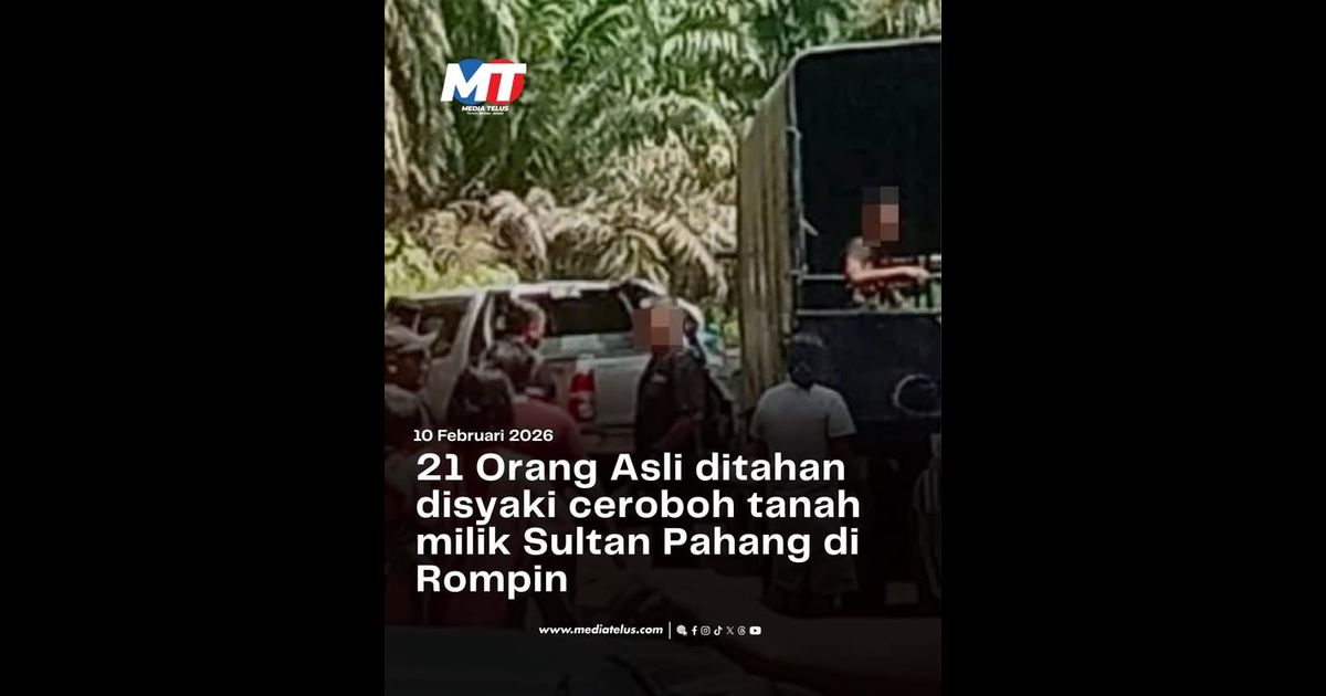 KUANTAN 10 Feb – Polis menahan seramai 21 Orang Asli, termasuk 17 wanita, selepas disyaki menceroboh tanah milik Sultan Pahang, Al-Sultan Abdullah Ri’ayatuddin Al-Mustafa Billah Shah, di Rompin, semalam.