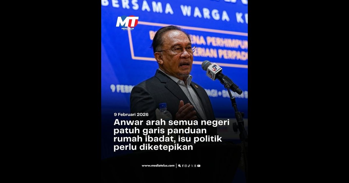 KUALA LUMPUR 9 Feb – Perdana Menteri, Datuk Seri Anwar Ibrahim menggesa semua kerajaan negeri supaya mematuhi ketetapan Kerajaan Persekutuan berhubung pembinaan rumah ibadat tanpa mengira fahaman politik.