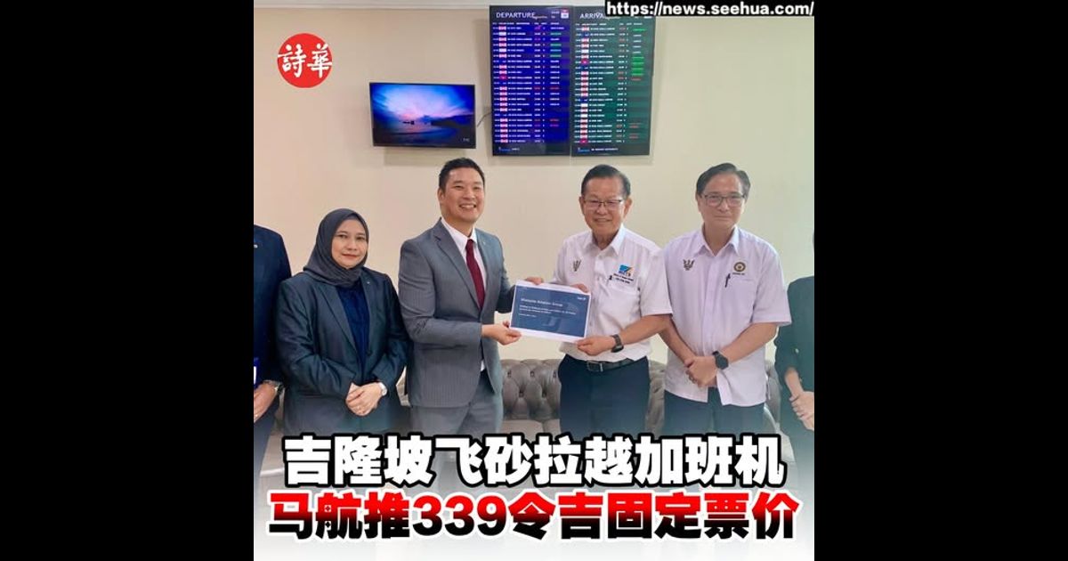 吉隆坡飞砂拉越加班机 马航推339令吉固定票价