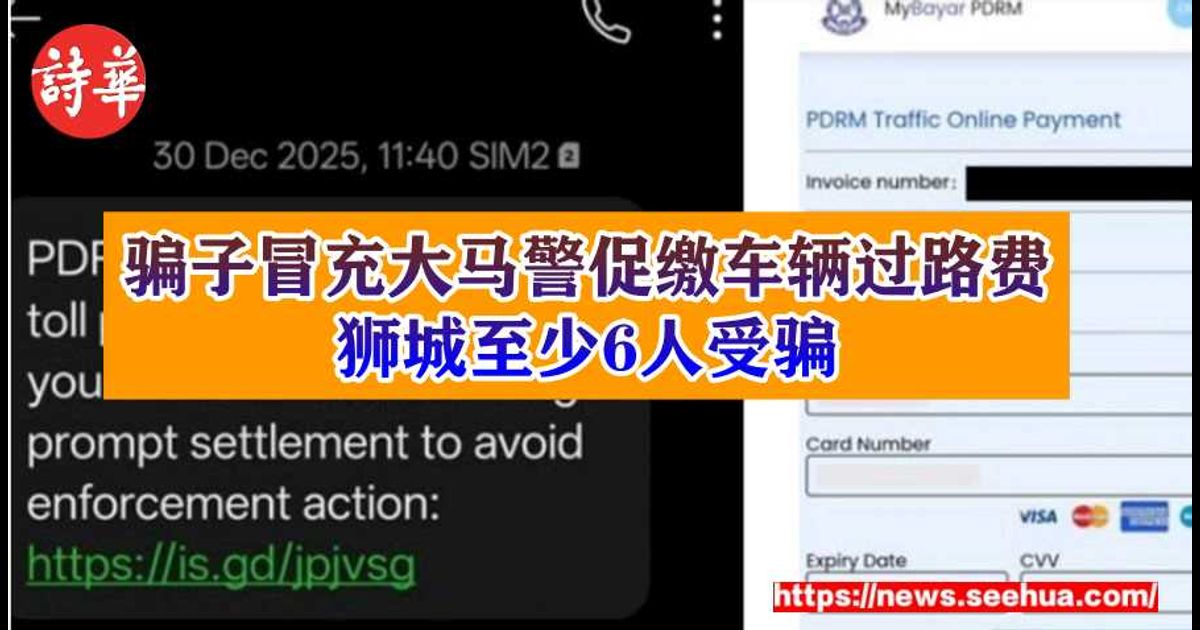 新加坡警察部队周二(10日)发文告说,自1月1日起,警方已接获至少6起假冒马来西亚皇家警察的相关骗案,在这类诈骗中,受害者会收到一则自称是马来西亚皇家警察(马来文简称为PDRM)的短讯,称他们有未缴清的车辆过路费,要求受害者点击连结付款,这个连结会把受害者引导至钓鱼网站,并让他们输入个人资料,例如身分证号码、车牌号码、银行资料、银行卡资料等。