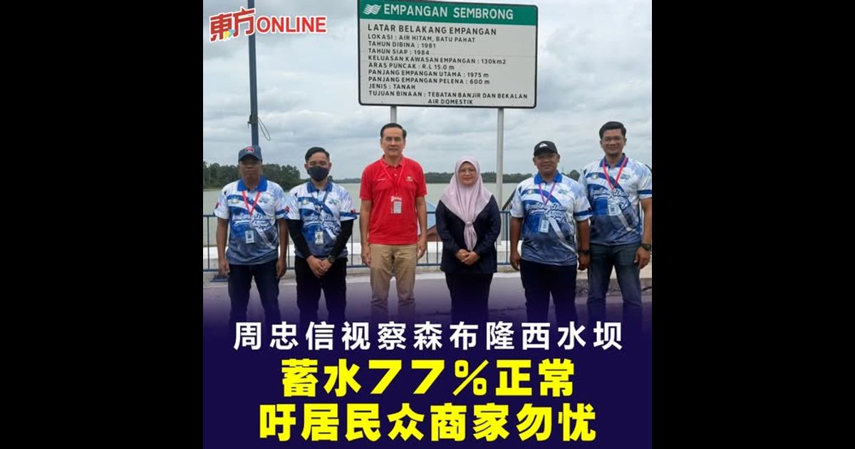 (居銮12日讯)针对近日吗什与新邦令金出现制水及水坝水位下降问题,民主行动党明吉摩州议员周忠信指出,根据实地考察,供应居銮与峇株巴辖主要水源的森布隆西水坝目前蓄水量达77%,仍处于正常水平,民众与商家无需过于担忧。