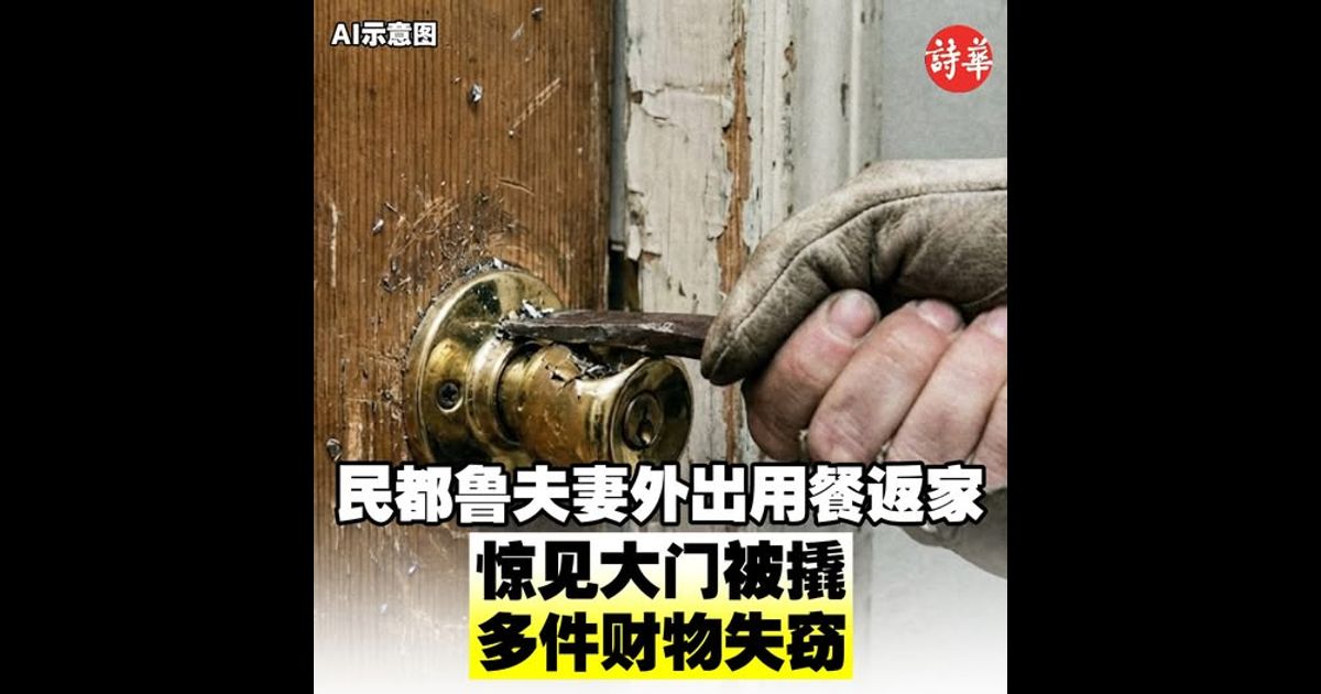 (民都鲁12日讯)夫妻俩外出用餐返家惊见大门被撬开,屋内多件财物失窃,损失约3500令吉。