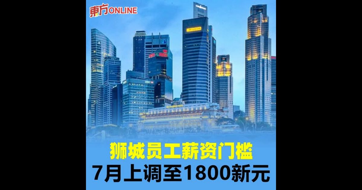 (新加坡12日讯) 今年7月1日起,新加坡薪资门槛将从现有的1600新元(约4954令吉),调高200新元(约619令吉)增至1800新元(约5574令吉),以进一步协助低收入员工。