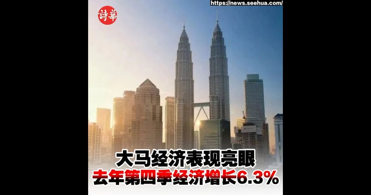 大马经济表现亮眼 去年第四季经济增长6.3%