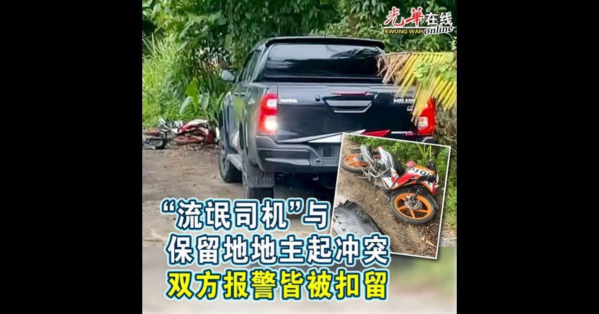 网传疑似“流氓司机”到保留地滋事,更恐吓对地主不利,并在乘坐四轮驱动车离开时与骑着摩托车的地主发生冲撞,双方随后报警互指对方的不是,但皆被警方扣留调查!