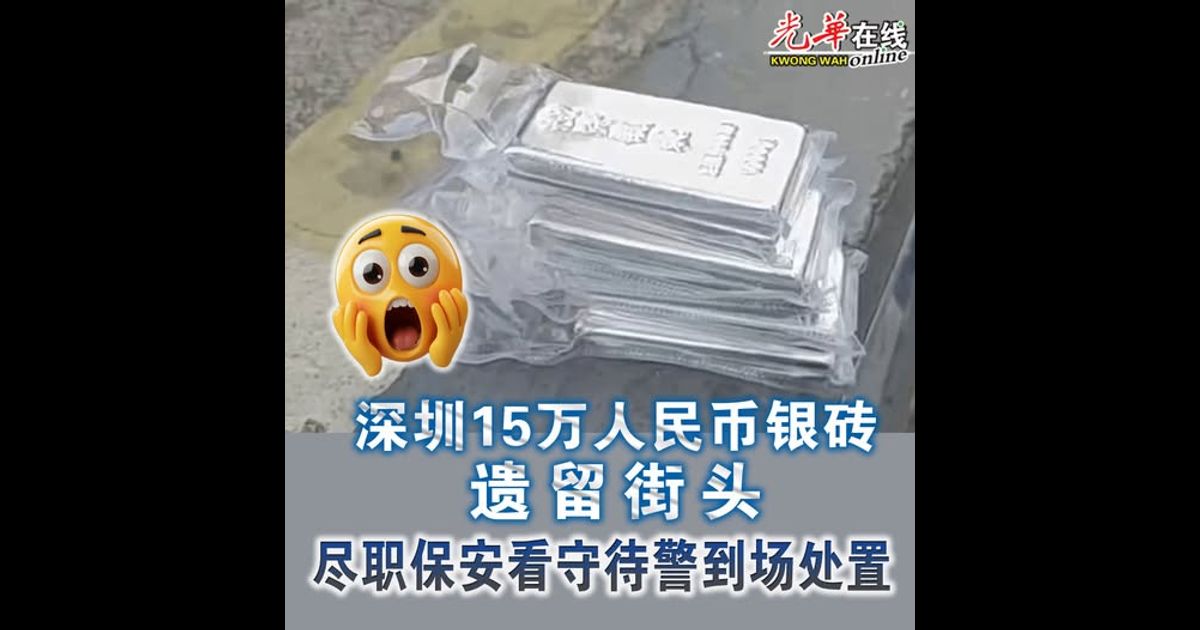 近日,中国网民在社交平台发布视频爆料,称罗湖水贝珠宝城路边有人遗留价值十余万人民币的银砖,引发路人围观。据了解,每块银砖上面标注为1000克,按照目前金银市场价,7块银砖的价值近15万人民币(8.51万令吉)。11日,经罗湖警方核实失主已找到,银砖已被领回。