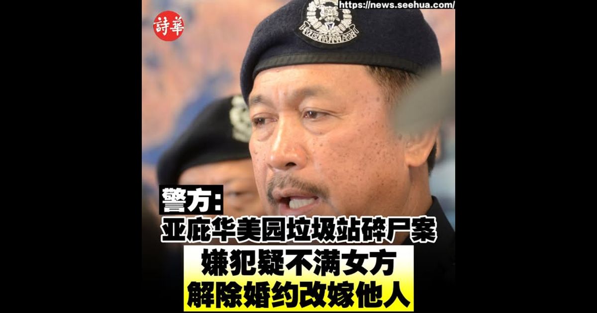 警方:亚庇华美园垃圾站碎尸案 嫌犯疑不满女方解除婚约改嫁他人