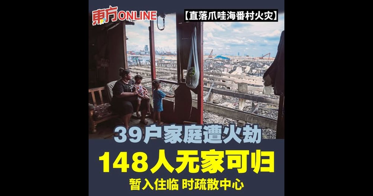 (新山13日讯) 马晒直落爪哇海番村昨日发生火灾,目前共有来自39户家庭的148名灾民无家可归,目前被暂时安置临时疏散中心。