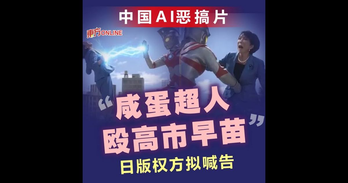 (东京13日讯)中日外交僵局未解,日本首相高市早苗又率领自民党在选战中取得大胜,让中国网民备感不满,用AI生成咸蛋超人痛殴、引爆高市早苗的影片。影片经社群流传,立刻引发大批日本网民不满,喊话拥有版权的圆谷制作公司采取法律行动。