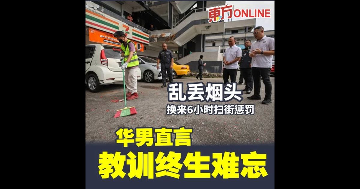 (新山13日讯)  华裔男子乱抛烟头,被执法人员当街取缔后,换来罚款及6小时的扫街社区服务,直言教训让他终身难忘,并承诺绝不再犯。