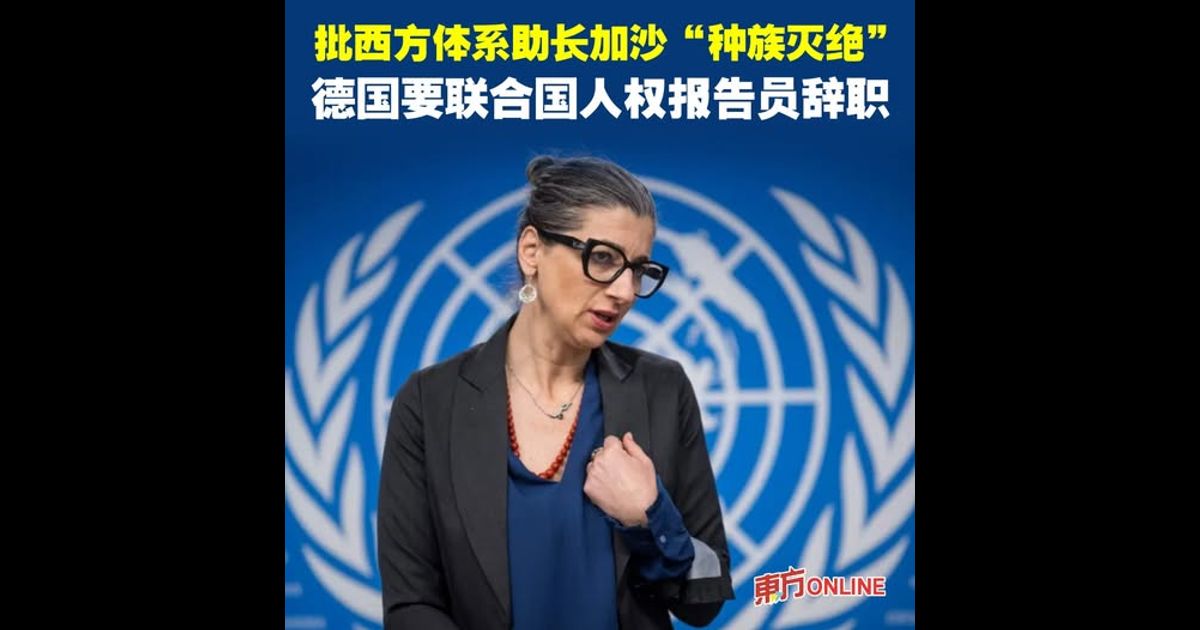 批西方体系助长加沙“种族灭绝” 德国要联合国人权报告员辞职