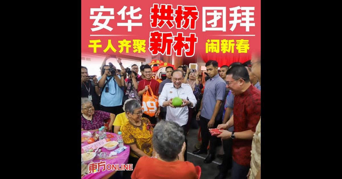 (怡保15日讯)新春气息洋溢拱桥新村!首相拿督斯里安华今日重返打扪国会选区内的拱桥新村,与华社同欢共庆农历新年,吸引近千名华团代表、乡亲父老及村民踊跃出席,场面热闹非凡。