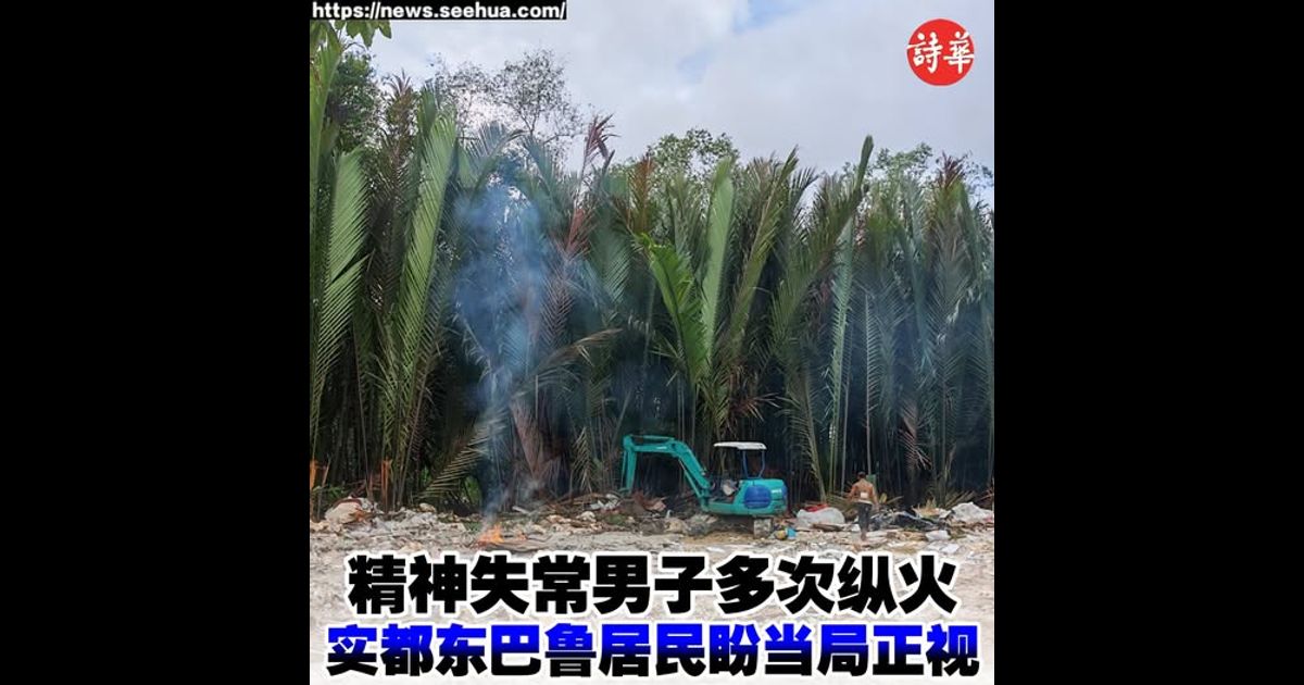 (古晋15日讯)实都东巴鲁一带居民申诉,一名疑似精神状况欠佳的男子多次在住家附近纵火,行为令人担懮。