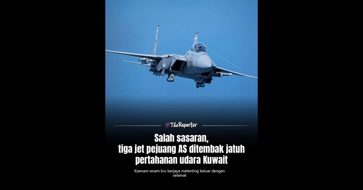 Amerika Syarikat mengesahkan tiga pesawat pejuang F-15E Strike Eagle miliknya ditembak jatuh secara tidak sengaja oleh sistem pertahanan udara Kuwait pada Ahad, menurut kenyataan rasmi Komando Pusat AS (CENTCOM).