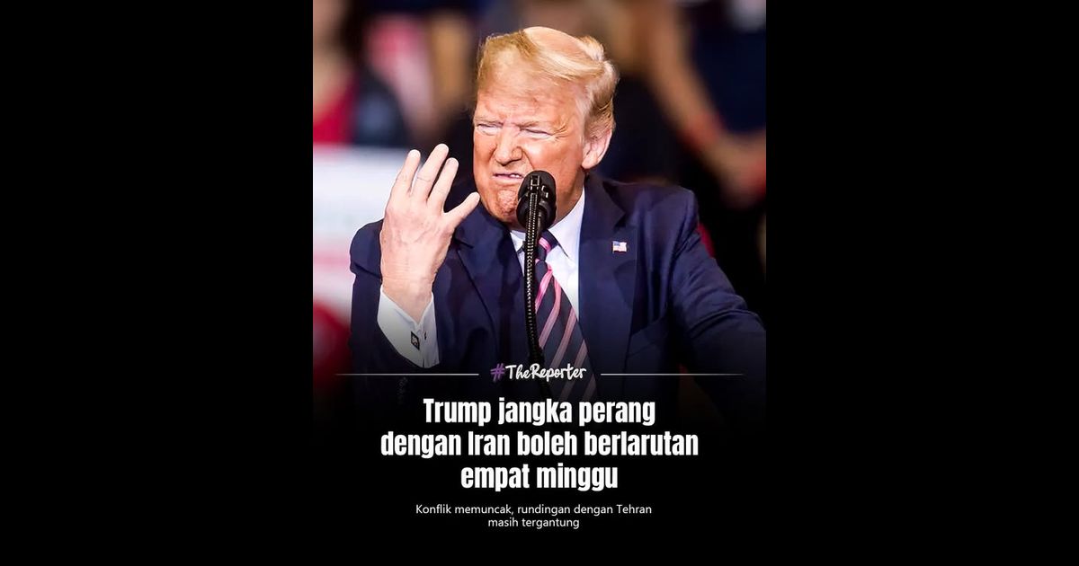 Dalam wawancara bersama akhbar Britain, Daily Mail, Trump menyifatkan Iran sebagai negara besar dan operasi tersebut mungkin selesai dalam tempoh empat minggu atau kurang, walaupun situasi semasa masih tegang.Beliau turut memaklumkan masih terbuka untuk rundingan lanjut dengan Iran, namun menyindir bahawa perbincangan sepatutnya berlaku lebih awal dan bukannya selepas konflik tercetus.Sumber: Daily MailGambar: Brian Cahn/ZUMA