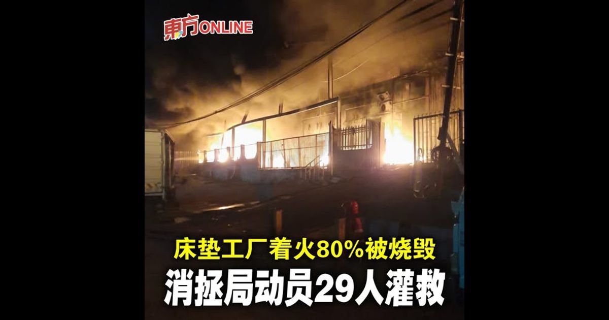 (蕉赖6日讯)一家床垫工厂今晚遭遇大火,滚滚浓烟直冲天际,29 名消拯人员正努力灌救,以扑灭大火。