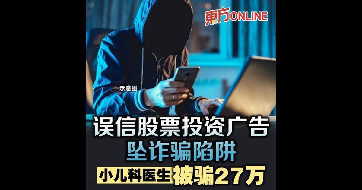 (新山5日讯)专业人士也难逃投资诈骗陷阱!一名在新山政府医院任职的小儿科医生,因误信社交媒体上的投资股票广告,在短短两个月内被骗走27万令吉。